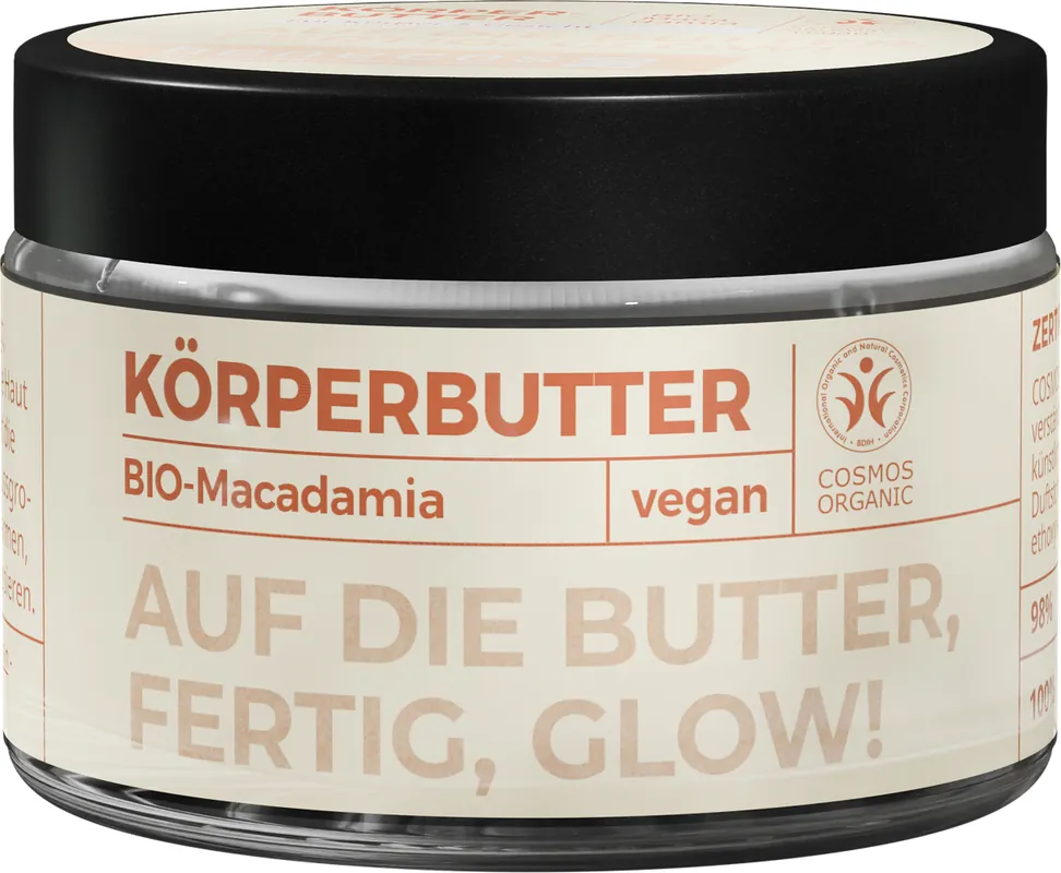 Körperbutter mit Bio-Macadamia pflegt, schützt & nährt anspruchsvolle, trockene Haut intensiv, spendet Feuchtigkeit und stärkt die Hautbarriere.