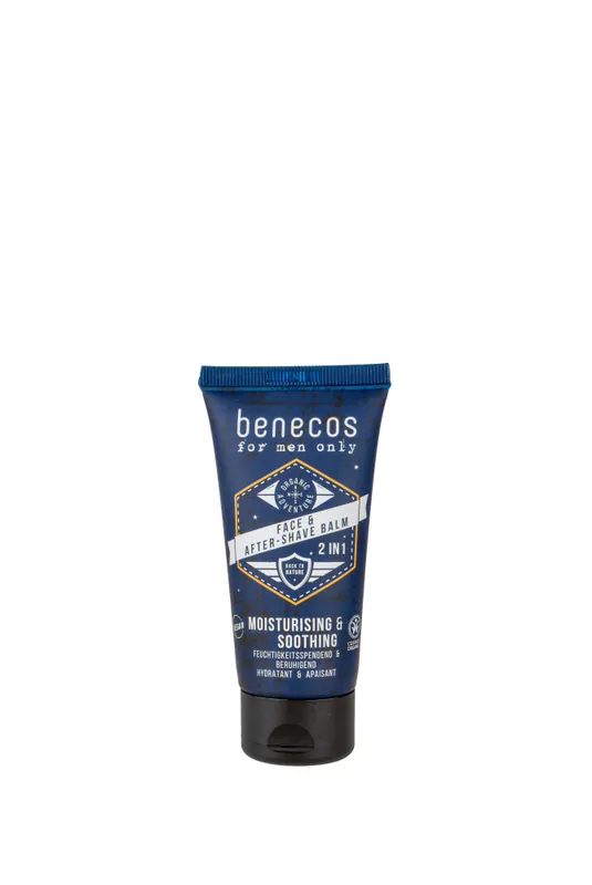 Natürlicher 2in1 Face & After-Shave Balm mit Bio-Aloe Vera und Bisabolol pflegt die Haut.