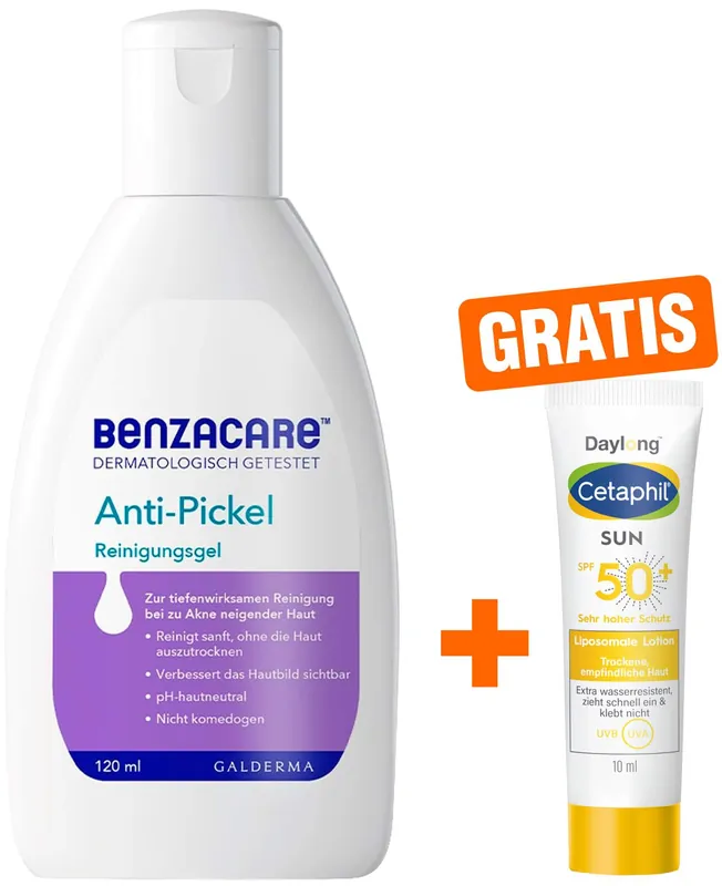 Benzacare Anti-Pickel Reinigungsgel 120 ml + gratis Cetaphil Sun Daylong SPF 50+ liposomale Lotion 10 ml Bestpreis