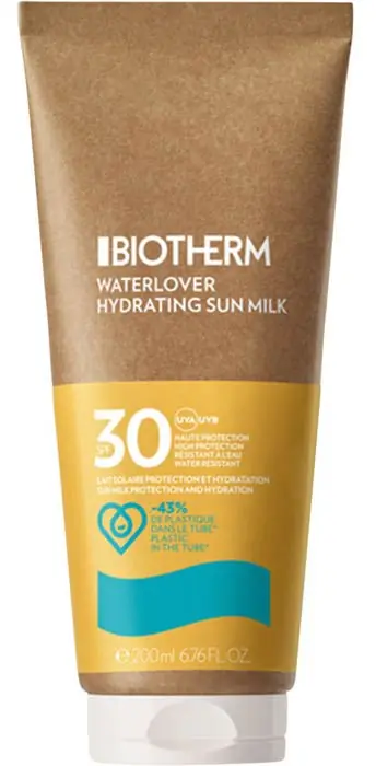 Die Waterlover Hydrating Sun Milk von Biotherm ist ein ökologischer Sonnenschutz für Gesicht und Körper, ohne Kompromisse bei der Textur. Mit der Waterlover Hydrating Sun Milk entwickelte Biotherm eine zu 93 % biologisch abbaubare Basisformel mit ökogetestetem Lichtschutzfilter. Die leichte nicht klebende Textur ist wasser- sandfest und bietet zusätzlich 24 h Feuchtigkeit. Dabei verzichtet Biotherm komplett auf Mikroplastik, Oxybenzon, Octinocat und Octocrylene. Die Waterlover-Umverpackung basiert auf recyceltem Papier. So werden die Meere und das Unterwasserleben geschont und Deine Haut wird zuverlässig vor UVA-/UVB- Strahlen geschützt.