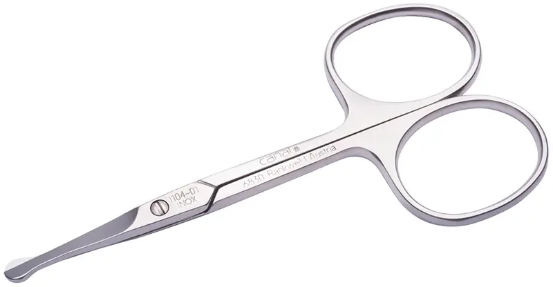 Die gerade, rostfreie Nasenhaarschere von Canal hat eine flügelförmige, abgerundete Spitze. Es besteht keine Verletzungsgefahr beim Schneiden. Die Nasenhaarschere schneidet bis zum Spitz, somit kein Rupfen oder Ziehen. Durch die gerade und längere Schneidfläche gelangt man gut auch an versteckte Härchen. Durch das konische Gewinde kann die Schraube jederzeit nachgezogen werden.