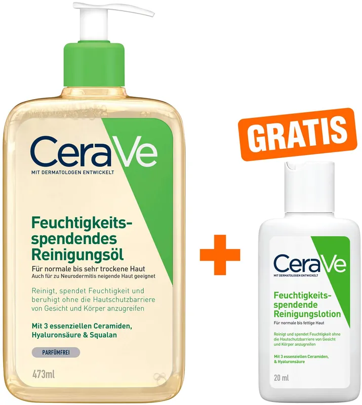 CeraVe Reinigungsöl 473 ml + gratis CeraVe feuchtigkeitsspendende Reinigungslotion 20 ml Finale Aktion