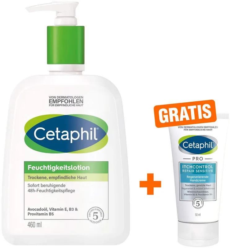 Cetaphil Feuchtigkeitslotion 460 ml + gratis Pro Itch Control Repair Sensitive Regenerierende Handcreme 50 ml Kostenloser Versand