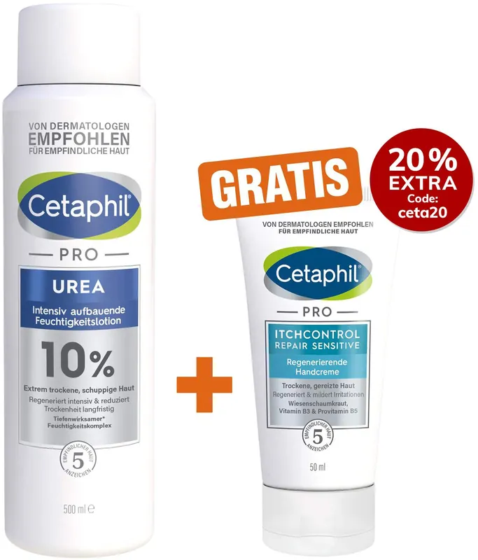 Cetaphil Pro Urea 10 % Lotion 500 ml + gratis Pro Itch Control Repair sensitive Regenerierende Handcreme 50 ml Expressversand