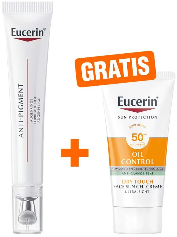Eucerin Anti-Pigment Augenpflege Augenringe 15 ml + gratis Sun Gel-Creme Oil Control 20 ml Sonderaktion
