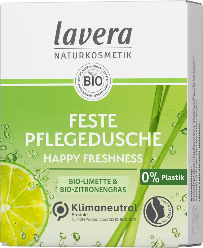 Entdecke das lavera Geheimnis natürlich erfrischender Körperreinigung in fester Form: Die vegane Rezeptur mit Bio-Limette und Bio-Zitronengras bietet ein angenehmes Schaumerlebnis mit erfrischendem Duft und reinigt die Haut sanft, ohne sie auszutrocknen. Für ein gepflegtes Hautgefühl schon bei der Anwendung.3x ergiebiger als Duschgel – Unsere feste Pflegedusche ist je nach Anwendungsgewohnheit dreimal ergiebiger als Duschgel.Unser Versprechen:- Naturkosmetik: Zertifiziert und dermatologisch getestet- Rezepturen: Biologisch abbaubar, ohne festes Mikroplastik, ohne künstliche Farb- und Konservierungsstoffe*- Verpackung: Recycelbares Kartonmaterial aus 100% Recyclingfasern„la vera“, die Wahre, engagiert sich für Klimaschutz und Tierschutz.* gem. EU-Kosmetik VODas gute Gefühl von 100% zertifizierter Naturkosmetik – ohne Kompromisse.