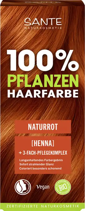Alle SANTE Pflanzenhaarfarben sind NATRUE zertifiziert und zu 100 % natürlichen Ursprungs. Dies bedeutet, dass sie immer ohne Silikone, Peroxide, Parabene oder Ammoniak auskommen und dadurch besonders schonend sind. Die vegane Pulver-Rezeptur beinhaltet keine Duftstoffe oder Alkohol. Verträglichkeit dermatologisch getestet.“