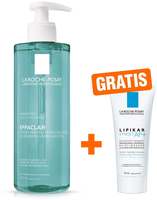 La Roche Posay Effaclar Mikro Peeling Reinigungsgel 400 ml + gratis Lipikar Syndet AP+ 15 ml Mega-Angebot