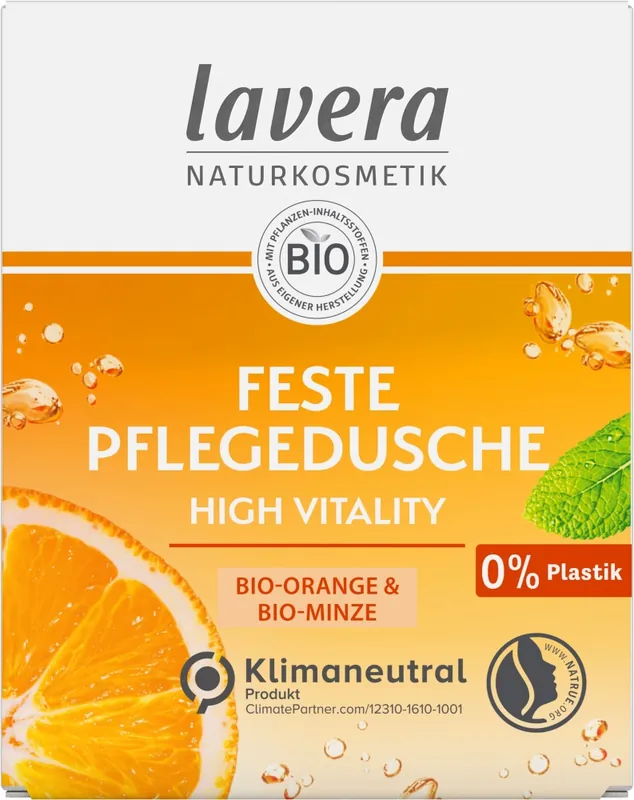 Entdecke das lavera Geheimnis natürlich vitalisierender Körperreinigung in fester Form: Die vegane Rezeptur mit Bio-Orange und Bio-Minze bietet ein angenehmes Schaumerlebnis mit wohltuendem Duft und reinigt die Haut sanft, ohne sie auszutrocknen. Für ein gepflegtes Hautgefühl schon bei der Anwendung.3x ergiebiger als Duschgel – Unsere feste Pflegedusche ist je nach Anwendungsgewohnheit dreimal ergiebiger als Duschgel.Unser Versprechen:- Naturkosmetik: Zertifiziert und dermatologisch getestet- Rezepturen: Biologisch abbaubar, ohne festes Mikroplastik, ohne künstliche Farb- und Konservierungsstoffe*- Verpackung: Recycelbares Kartonmaterial aus 100% Recyclingfasern„la vera“, die Wahre, engagiert sich für Klimaschutz und Tierschutz.* gem. EU-Kosmetik VODas gute Gefühl von 100% zertifizierter Naturkosmetik – ohne Kompromisse.