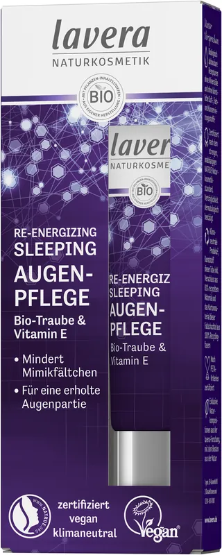 Während wir schlafen, arbeiten unsere Hautzellen auf Hochtouren, um die Spuren des Tages zu reparieren. Die Re-Energizing Sleeping Augenpflege von lavera pflegt die sensible Augenpartie sanft und mindert dunkle Schatten unter den Augen.
