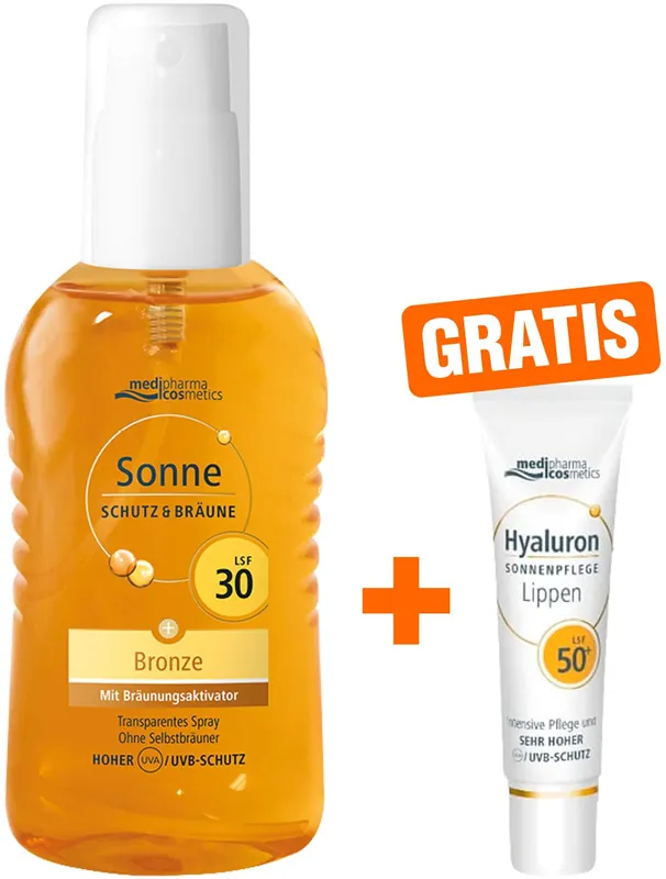 medipharma cosmetics Sonne Schutz & Bräune LSF 30 200 ml Pumpspray + gratis Hyaluron Sonnen-Lippenpflege LSF 50+ 7 ml Neue Kollektion
