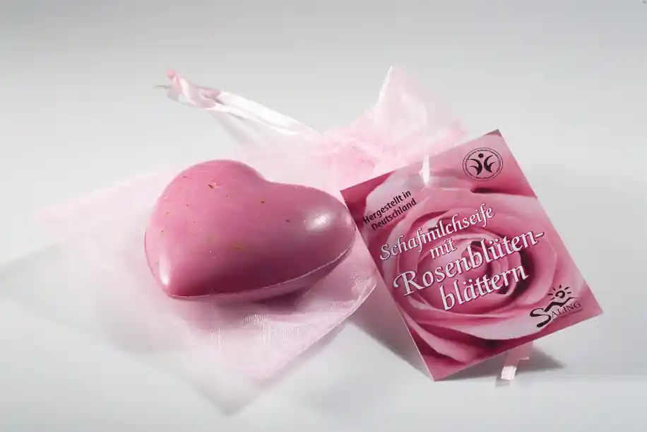 Diese herzförmige Schafmilchseife mit Rosenblütenblättern ist das perfekte Geschenk für einen lieben Menschen!Verwöhnen sie Ihre Haut mit dieser milden und hautschonenden Schafmilchseife. Wertvolle Inhaltsstoffe wirken rückfettend und schenken zarte, geschmeidige Haut.