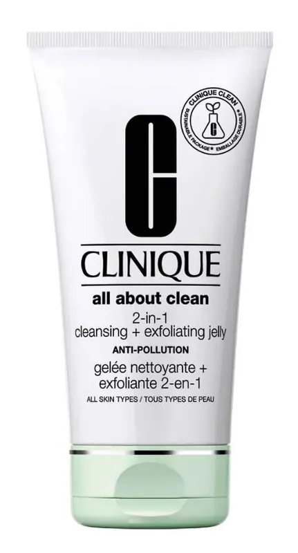 Das All about clean 2-in-1 Cleansing + Exfoliating Jelly Anti-Pollution von Clinique ist ein innovatives 2-in-1 Produkt, das die Haut porentief reinigt, erfrischt, verfeinert und ein angenehmes Gefühl hinterlässt. Befreit zuverlässig von Schmutz, Unreinheiten, abgestorbenen Hautzellen und überschüssigem Öl. Die einzigartige Jelly-Textur ist sanft genug für die tägliche Reinigung. Jetzt auch in nachhaltiger Verpackung. Einfach. Sicher. Wirksam. Allergiegetestet. 100% Parfumfrei.