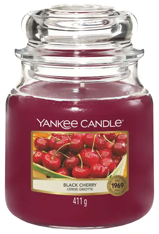 Die Black Cherry Kerze von Yankee Candle verbeitet einen fruchtigen Duft, der perfekt die köstliche Süße vollmundiger, reifer Kirschen einfängt.