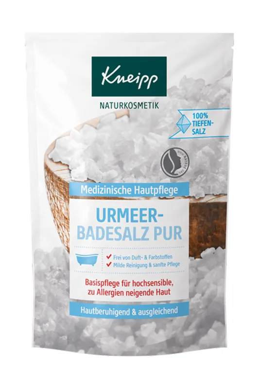 Kneipp® Urmeer–Badesalz eignet sich für jeden Hauttyp, ist jedoch besonders zu empfehlen bei hochsensibler, zu Allergien neigender Haut.