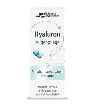 Die Hyaluron Augenpflege von medipharma cosmetics versorgt die trockene, empfindliche Haut um die Augen mit Feuchtigkeit. Feine Fältchen werden geglättet, Augenringe und -schwellungen gemindert.