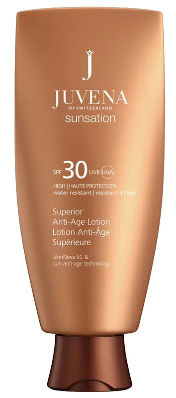 Die Superior Anti-Age Lotion SPF 30 von Juvena stimuliert das Immun-Abwehr-System und so auch die Regenerationsfähigkeit der Epidermis, um langfristige Schädigungen und vorzeitiges Altern der Haut zu verhindern. Darüber hinaus schützt sie vor Kollagen- und Elasting-Abbau sowie der Entstehung freier Radikale. Ein weiterer Pluspunkt der Superior Anti-Age Lotion SPF 30 ist die Wasserfestigkeit für optimalen Schutz auch im Wasser. So wird auch vorzeitiger Hautalterung vorgebeugt. Entdecken Sie Sunsation, die neue Sonnen-Kosmetik von Juvena. Umfassender Schutz kombiniert mit wirkungsvoller Anti-Aging Technologie lässt Sie unbeschwerte Sonnenstunden genießen. Juvena Sunsation vereint tiefenwirksames Anti-Aging mit fortschrittlichem Sonnenschutz als Pflegekonzept für die Sonnenzeit.