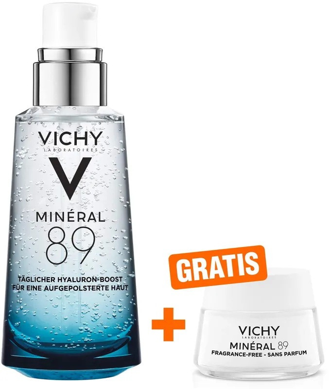 Sonderaktion Vichy Mineral 89 Elixier 75 ml + gratis 72h Feuchtigkeits Boost 15 ml Creme