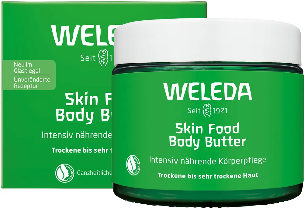 „Du cremst und cremst aber deine Haut wird nicht satt? Entdecke Weleda Skin Food Body Butter, das Superfood für trockene bis sehr trockene Haut. Die einzigartige Komposition der Skin Food Body Butter spendet trockener Haut lang anhaltende Feuchtigkeit.