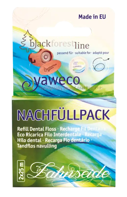 yaweco Nachfüllpackung Zahnseide aus reiner Seide mit Bienenwachs, 2 x 25 m, Nachfüllpackung für Artikel 110002 yaweco Zahnseidenspenderdose und 110003 yaweco Black Forest Line Zahnseidenbox aus heimischen Hölzern.